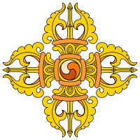 பூடான் நாட்டின் தேசிய சின்னத்தில் உள்ள இந்திரனின் இரட்டை வஜ்ராயுதம்.