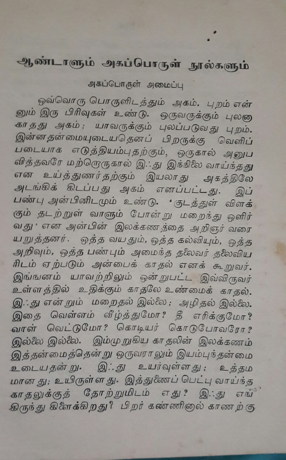 அருமையான இந்தப் புத்தகத்தில், பன்முனை ஆராய்ச்சிகளுடன், 'ஆண்டாளும் அகப்பொருள் நூல்களும்'என்னும் தமிழாராய்ச்சிப் பகுதி ஒன்று இருக்கிறது.