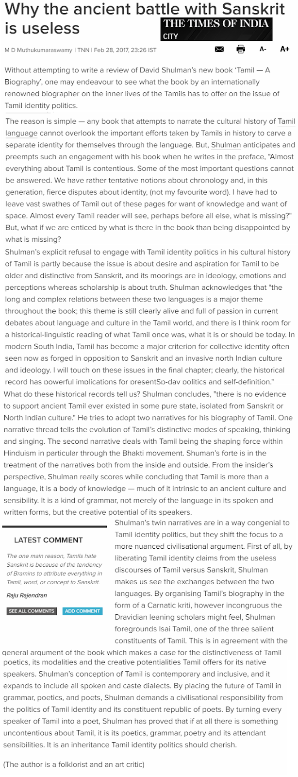 2. தொல்காப்பியர் 'அந்தணர் மறைத்தே ' என்று குறித்திருப்பதும், எட்டுவகை (கந்தருவம் உள்ளிட்ட) மணங்களைக் குறிப்பிட்டிருப்பதும் அவை (தொல்காப்பியர் சொல்லும் மறை என்பது) வடமொழி வேதங்கள்தாம் என்பதற்குப் போதுமான சான்றாகும். அவை தமிழ்வேதங்கள் என்பது பொருந்தாது. (பக்கம் - 81-84)